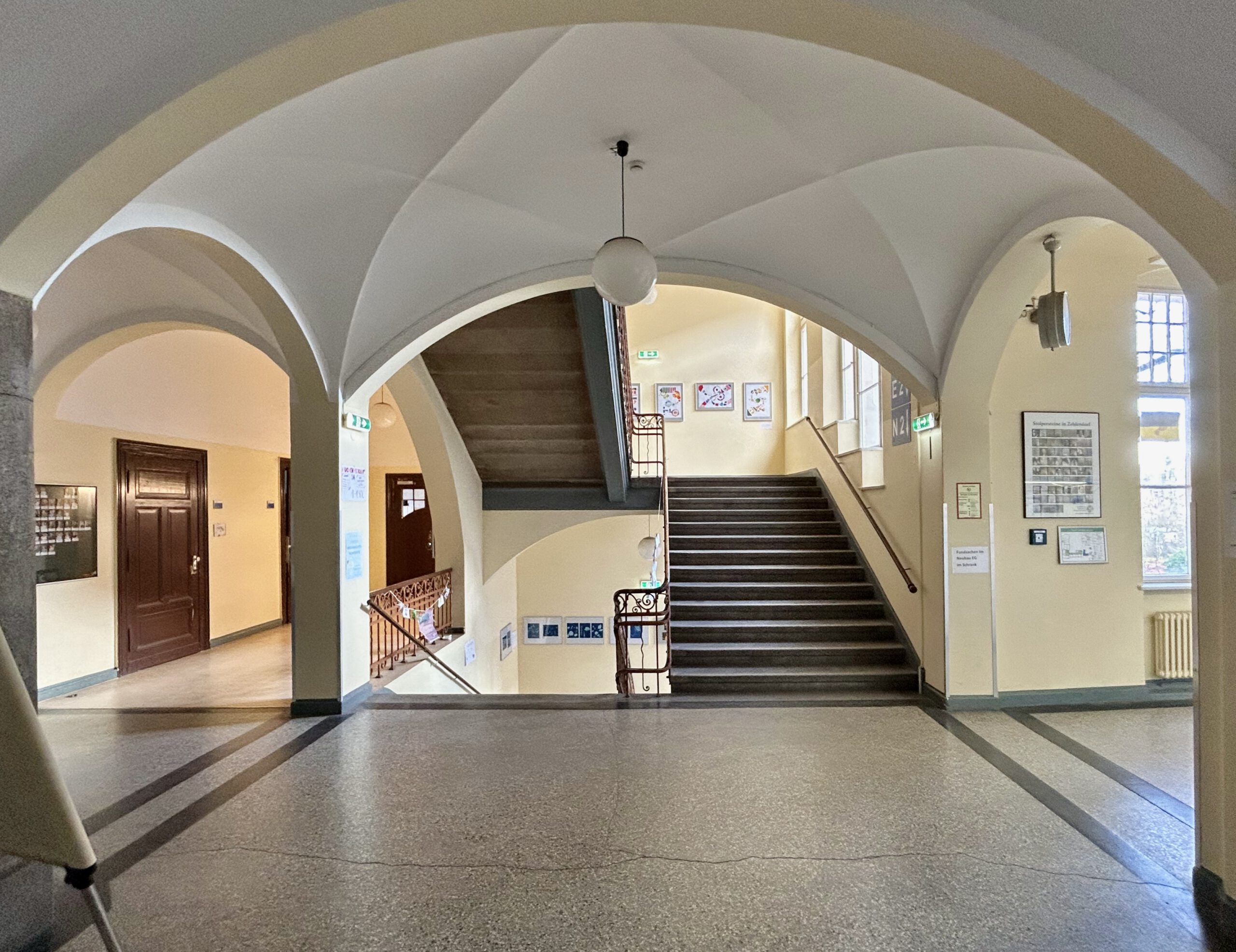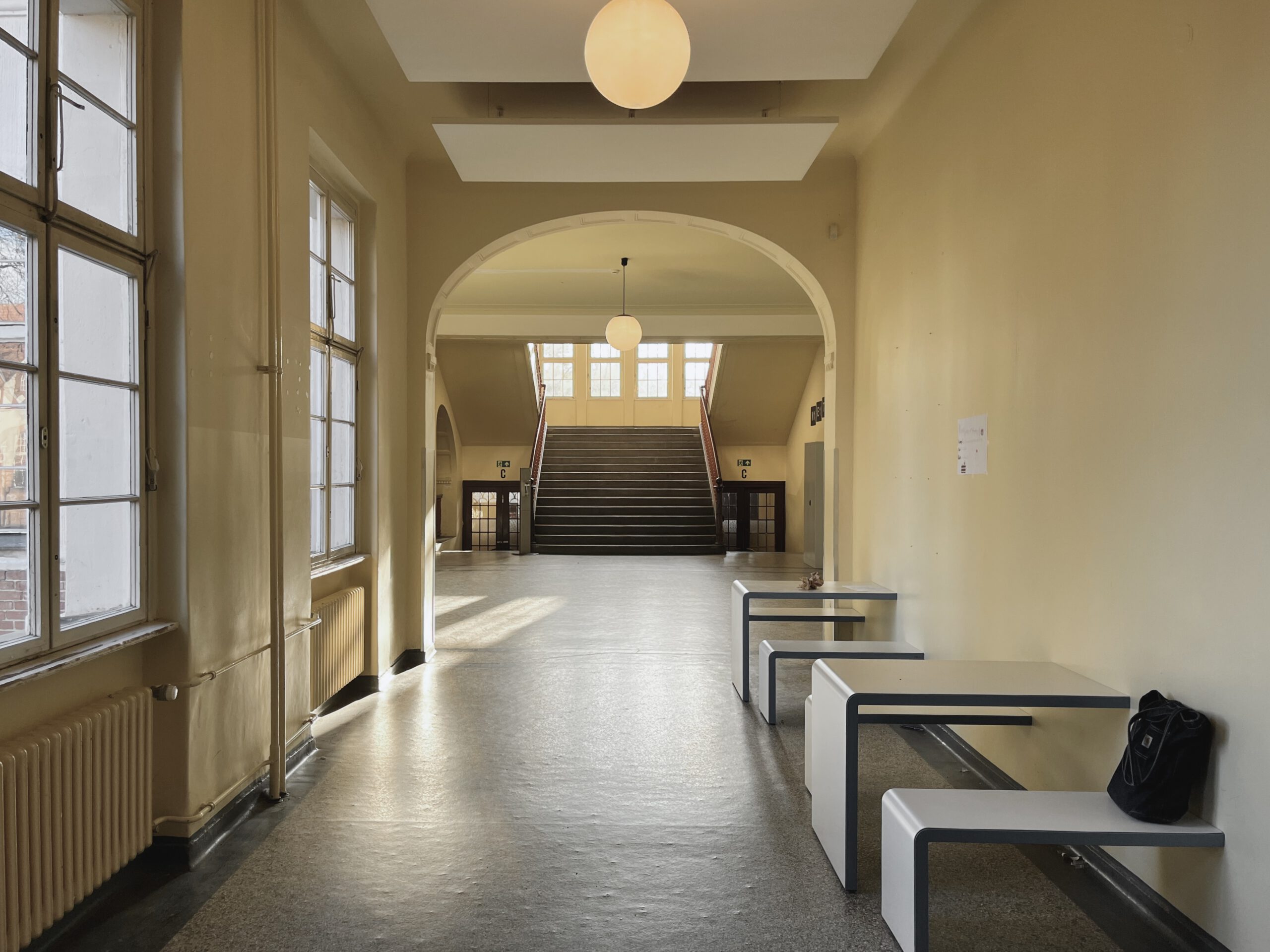 Im Zuge der brandschutztechnischen Sanierung wird das Hauptgebäude umfassend ertüchtigt. Ziel ist es, eine genehmigungsfähige Lösung zu entwickeln, die die bestehenden Brandschutzmängel beseitigt und heutigen Sicherheitsstandards entspricht, dabei jedoch die architektonische Qualität und räumliche Großzügigkeit des historischen Bestands wahrt. Die Planung erfolgt in enger Abstimmung mit der Denkmalschutzbehörde und orientiert sich an der Brandschutzertüchtigung der denkmalgeschützten Zinnowwald-Grundschule in Zehlendorf.